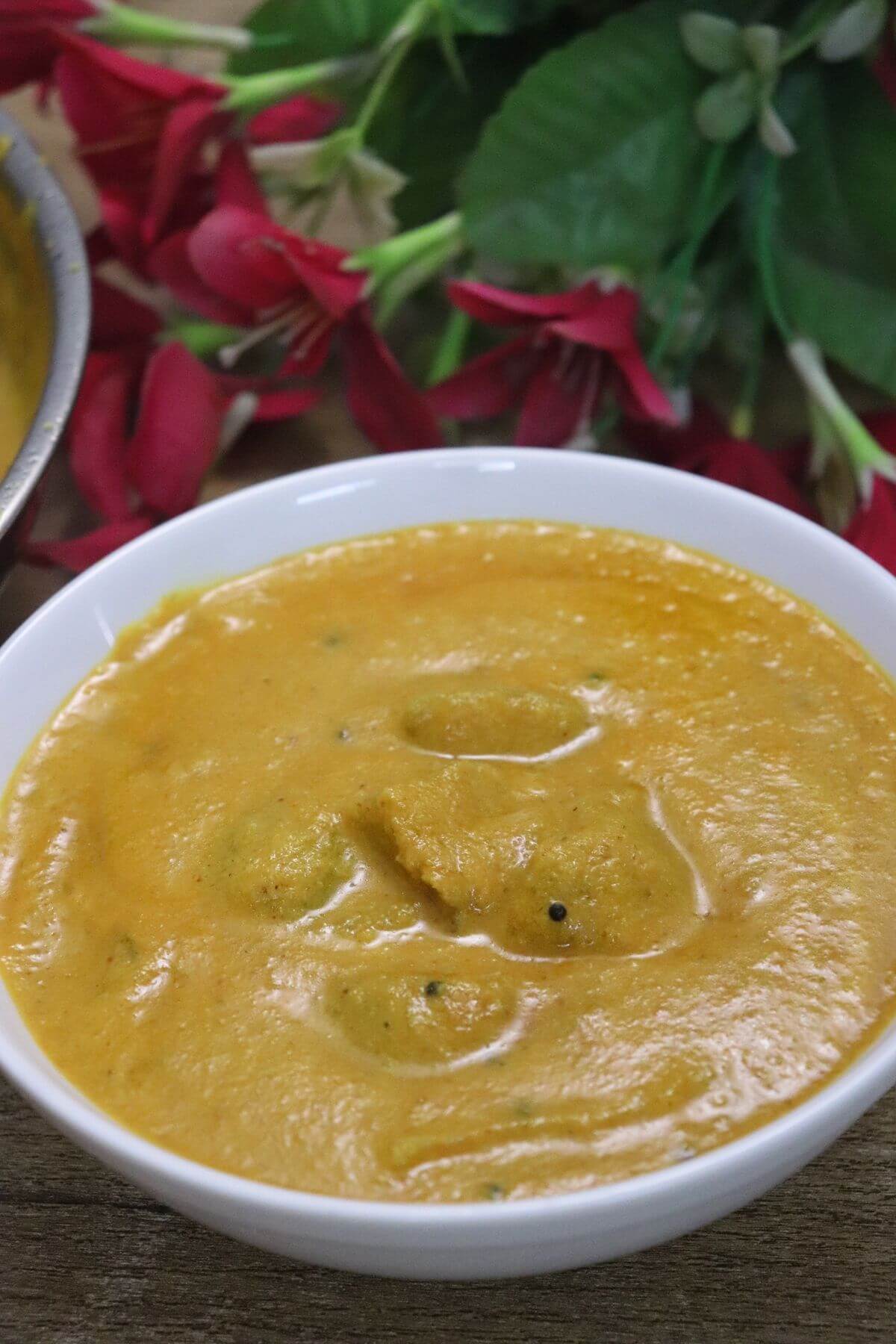 - Keep the uddamethi curry slightly thick. If it becomes too thin, cook for a few more minutes.